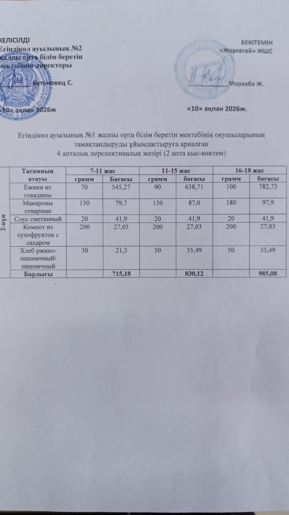 4 апталық мәзір (2-апта) Сейсенбі