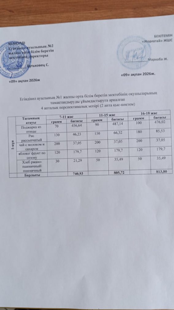 4 апталық мәзір (2-апта) дүйсенбі