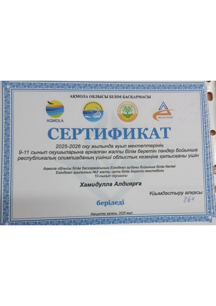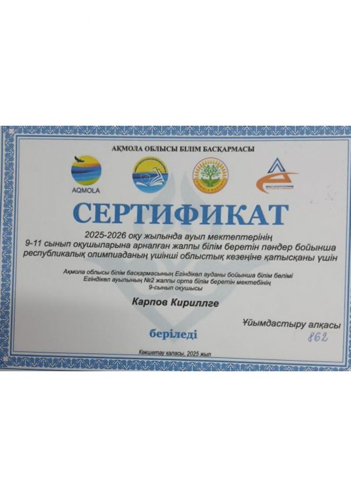 Коммунальное государственное учреждение "Общеобразовательная школа №2 села Егиндыколь отдела образования по Егиндыкольскому району управления образования Акмолинской области"