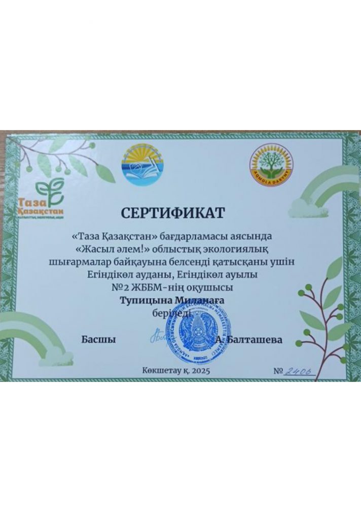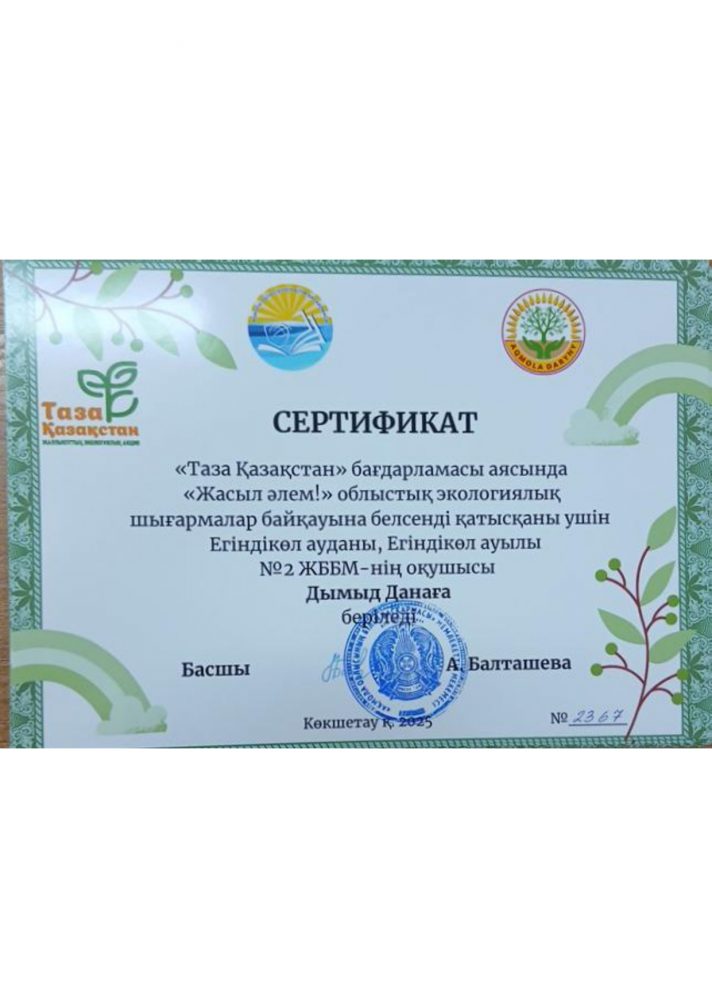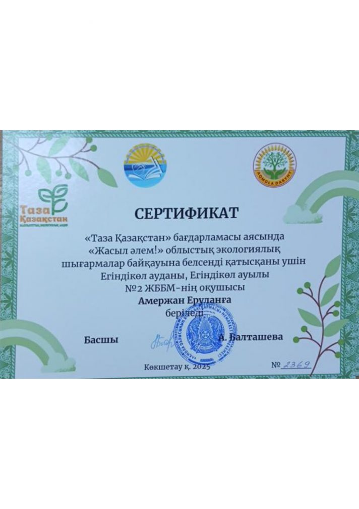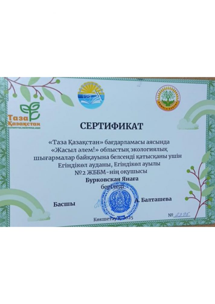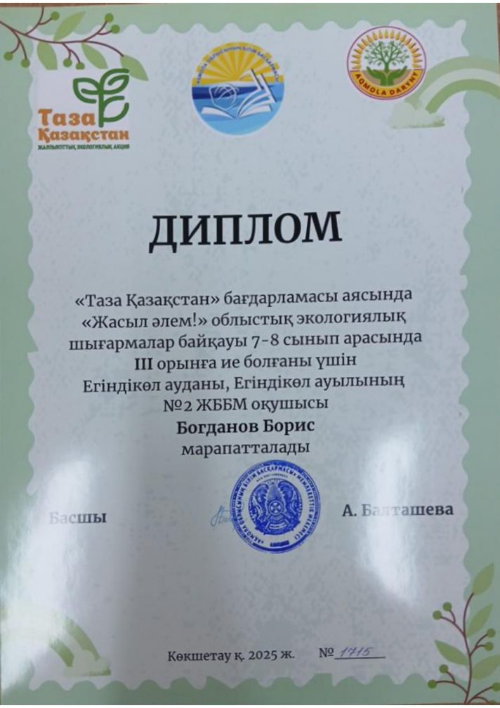Коммунальное государственное учреждение "Общеобразовательная школа №2 села Егиндыколь отдела образования по Егиндыкольскому району управления образования Акмолинской области"