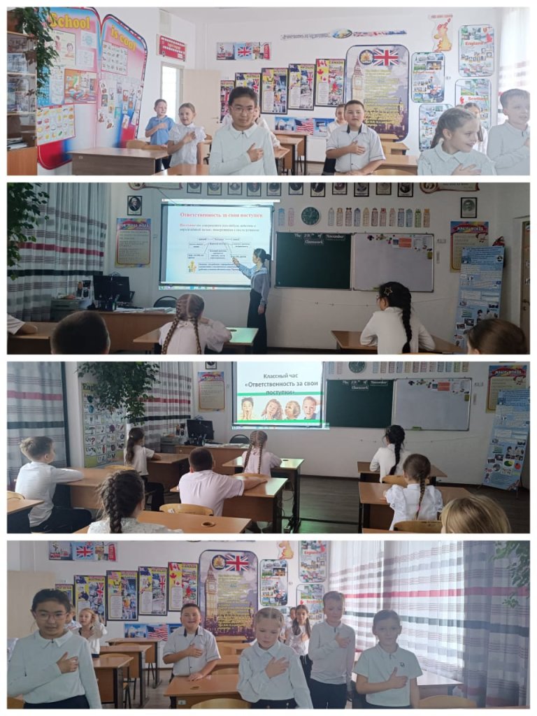 24 қарашада 1-сынып оқушылары «Өз іс-әрекеттері үшін жауапкершілік» тақырыбында сынып сағатын өткізді.