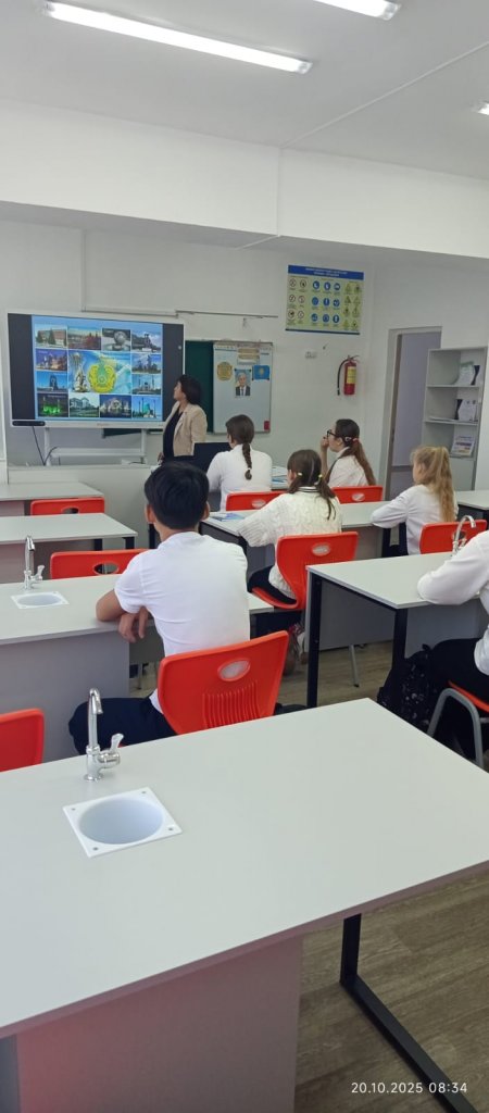 Тәрбие жоспарына сәйкес «Республикалар-Мақтанышым!» атты сынып сағаты өтті. 6Б сыныбында өткізілді. Қауіпсіздік сабағы: Мұздағы қауіпсіздік. Сынып сағатының мақсаты ел тарихына деген қызығушылықты дамыту; азаматтық жауапкершілік, отансүйгіштік, туған жерге деген сүйіспеншілік сезімін тәрбиелеу.