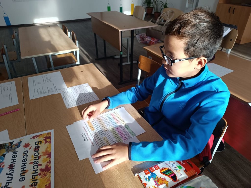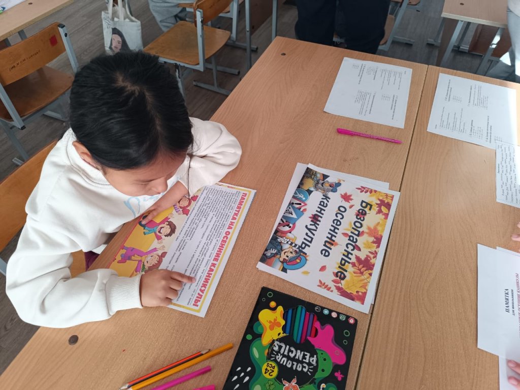 Күзгі демалыс кезінде біз балалармен күзгі демалыстың қауіпсіз өтуі туралы қысқаша әңгімелестік. Біз мектепте жаңбырлы және салқын ауа райында денсаулық пен қауіпсіздікті қалай сақтау керектігін талқылау үшін жиналдық. Біз ауа райы туралы қысқаша талқыладық: жаңбыр, суық, тайғақ жапырақтар және жылы, су өткізбейтін киім мен аяқ киім кию қажеттілігі.