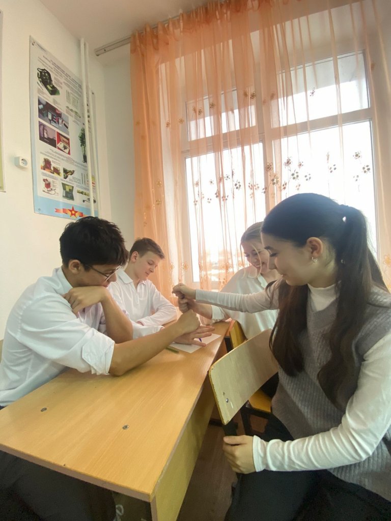 Сабақ барысында оқушылардан бірлескен шешімдерді, келіссөздер жүргізу қабілетін және бір-бірін тыңдауды талап ететін топтық жаттығуды орындау сұралды. Қатысушылар белсенді қатысып, бастамашылық, қолдау және ортақ шешім табуға дайындық танытты.