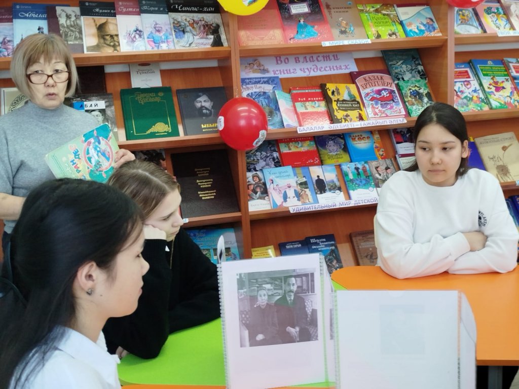 11-сынып оқушылары (сынып жетекшісі Д.Н. Амантаева) кітапханашының жазушының өмірі мен шығармашылығы туралы презентациясын тыңдады.
