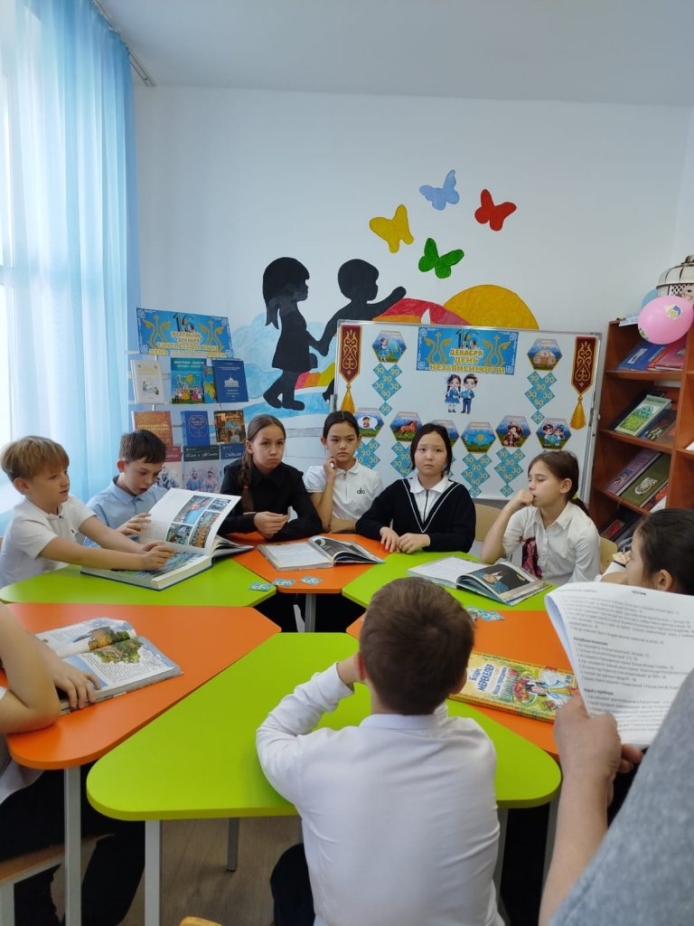 Тәуелсіздік күніне орай мектеп кітапханасында патриотизм сезімін, Отанға деген сүйіспеншілікті, Қазақстан халқының тарихи өткеніне, бүгініне және жарқын болашағына мақтаныш сезімін қалыптастыру үшін викторина өткізілді.