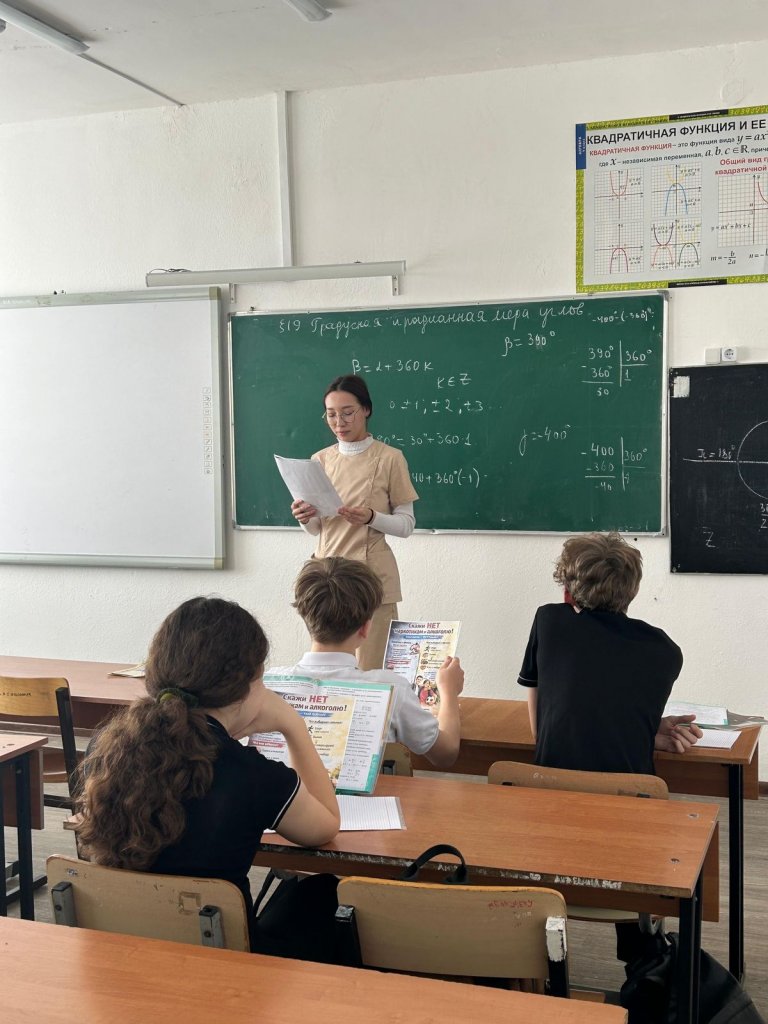 «№2 жалпы білім беретін мектеп» КМУ-де медицина қызметкері Эльвира Иванова мен білім беру психологы Диана Сергеевна Ефремова темекі шегу мен алкогольді тұтынудың алдын алу бойынша профилактикалық іс-шара өткізді.