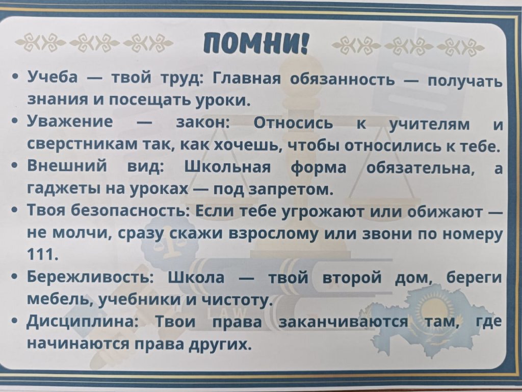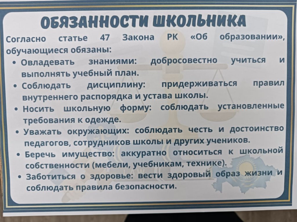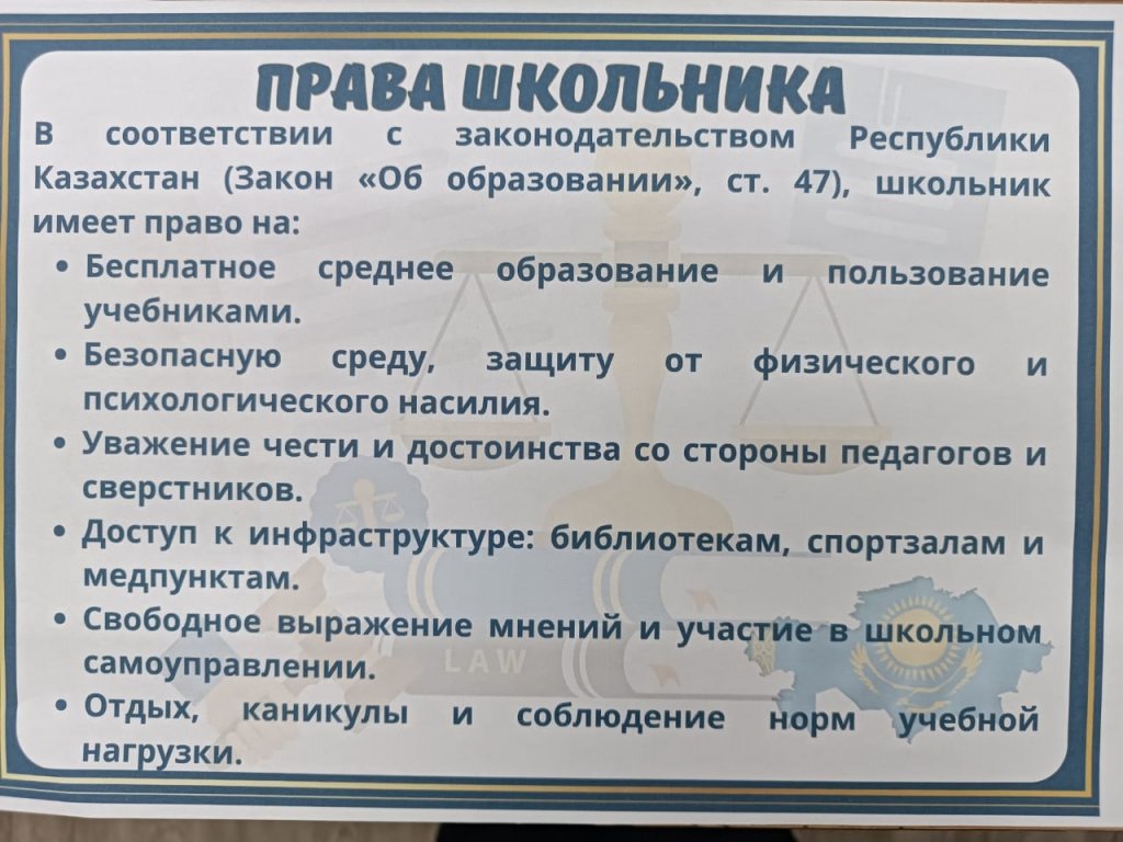 Мектептің әлеуметтік қызметкері оқушылармен құқықтық сауаттылықты, саналы мінез-құлықты және басқаларға құрметпен қарауды дамытуға бағытталған «Менің құқықтарым - менің жауапкершілігім» тақырыбында пікірталас жүргізді.