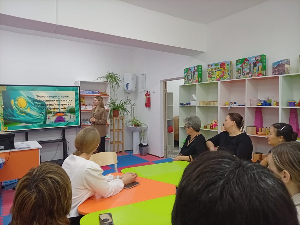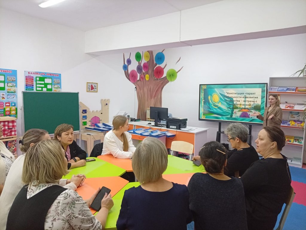 Азаматтық сана мен құқықтық мәдениетті нығайтуға бағытталған іс-шаралар аясында «Конституция – ұлттық тұрақтылық пен дамудың кепілі» тақырыбында мұғалімдер қауымдастығымен кездесу өтті.