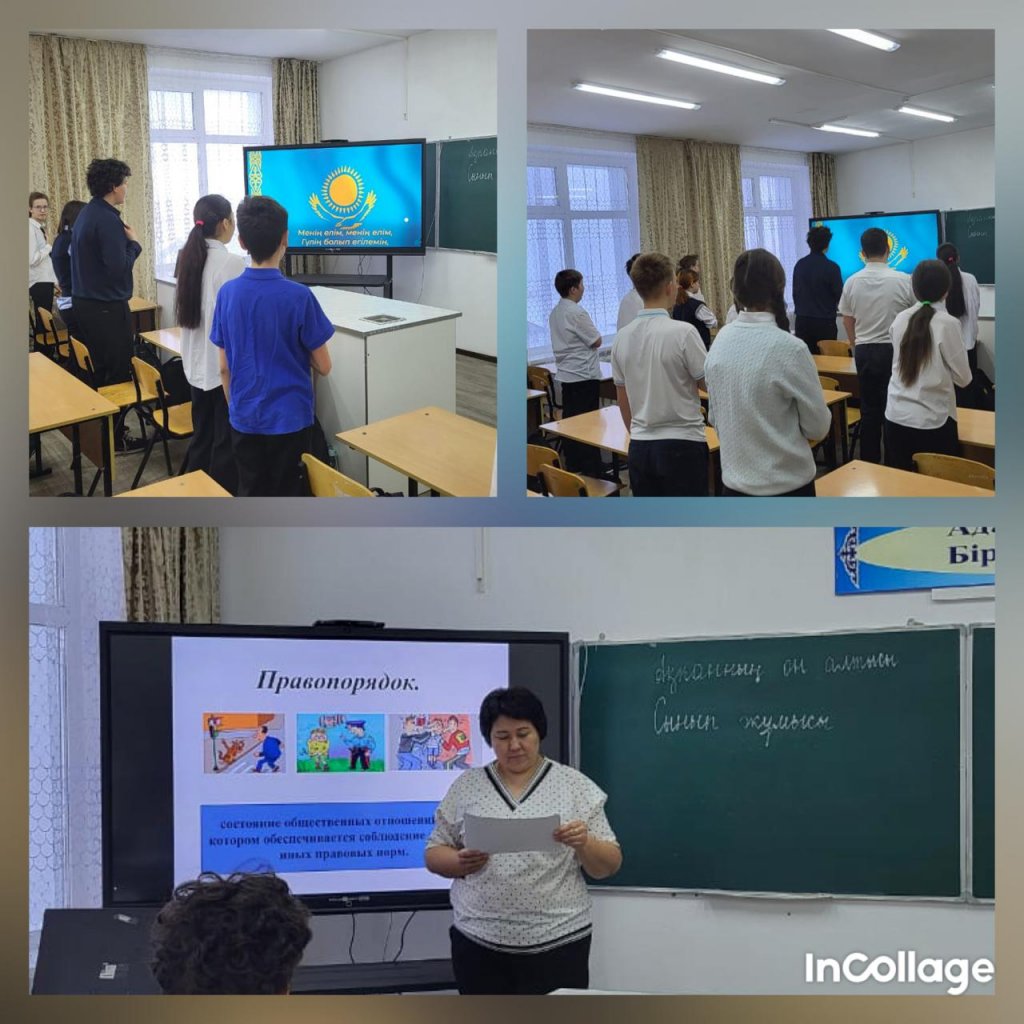 Білім беру жоспарына сәйкес, 7 «А» сыныбында «Құқықтық тәртіп және әлеуметтік жауапкершілік» тақырыбында сынып сағаты өткізілді.