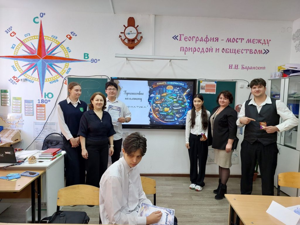 Информатика, физика және математика онкүндігі аясында 10 және 11 сынып оқушыларына арналған «Информатика ғаламшарына саяхат» атты сыныптан тыс информатика іс-шарасы өткізілді.